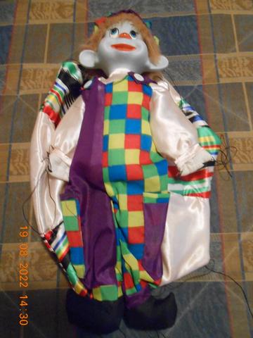 3 Payasos de porcelana el de la primera foto y el más grande es un payaso cometa, luego hay otros 2 más pequeños uno en morado y otro en amarillo y el último es un payaso musical, ideales para regalo.